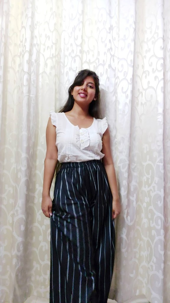Recently I got a pair of these pants in black with white stripes on it and thought of styling it in 4 different ways. So, let’s talk about how to style striped palazzo pants and the 4 striped palazzo pants outfits.